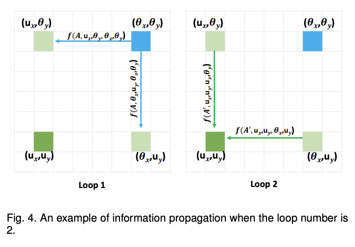 이와 같이 2번 연속으로 쌓은 Recurrent Criss Cross Attention(RCCA)를 구성하게 되면 십자가에 위치하지 않은 point들에 대한 정보도 반영할 수 있게된다. 그 이유는 위의 그림을 보면 알 수 있다. 첫번째 module에서 파랑색 point의 정보가 연두색 points로 흘러들어가게 되고, 두번째 module에서 연두색 points의 정보가 녹색 point에 흘러들어가기 때문에 결과적으로 파랑색 point의 정보가 녹색 point에 존재하게된다. 마찬가지로 임의의 다른 point들의 정보들도 다 반영이 되기때문에 global한 정보를 반영한 feature map이되게 된다.